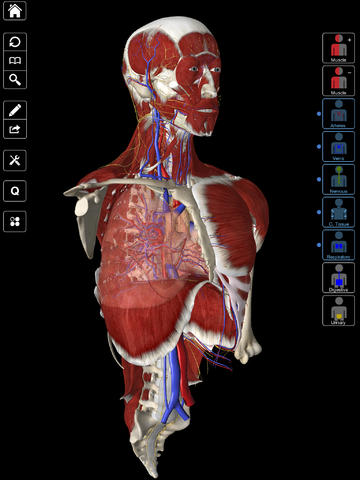 Clever functionality found within the app allows the user to strip away layers of muscle via the ‘scalpel’ tool. This app provides users with the ability to turn on/off systems without the need to deselect individual structures or muddle through a multitude of predefined regional tabs, like other apps.