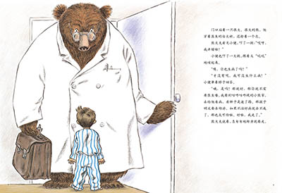 孩子每次看到医生,都带着一丝恐惧,但是这只熊大夫却那么和蔼可亲。我想,女儿对医生的惧怕,应该从这个绘本中减轻很多。