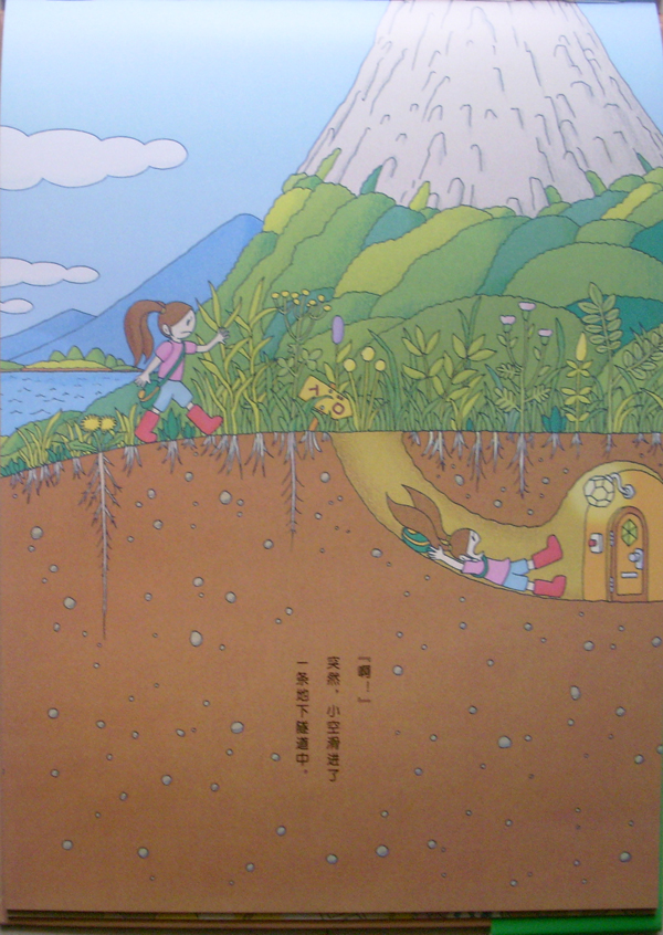这本书和以前读的绘本有不同之处。一般的绘本都是横开,这套书是纵开。所以在看地上100层的时候,好像是在一页页的向上看,是向上爬一样;看底下100层的时候,一页页地向下看,也像是一点点的向下爬。或许这就是这本书的独特之处所在吧。