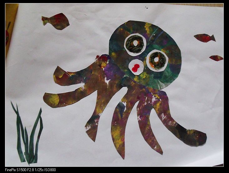 然后,找一个你喜欢的图案,或是动物或是风景,越简单越能体现这种风格的特点,剪、贴,重新拼合后,乱七八糟的色彩纸有了生命。