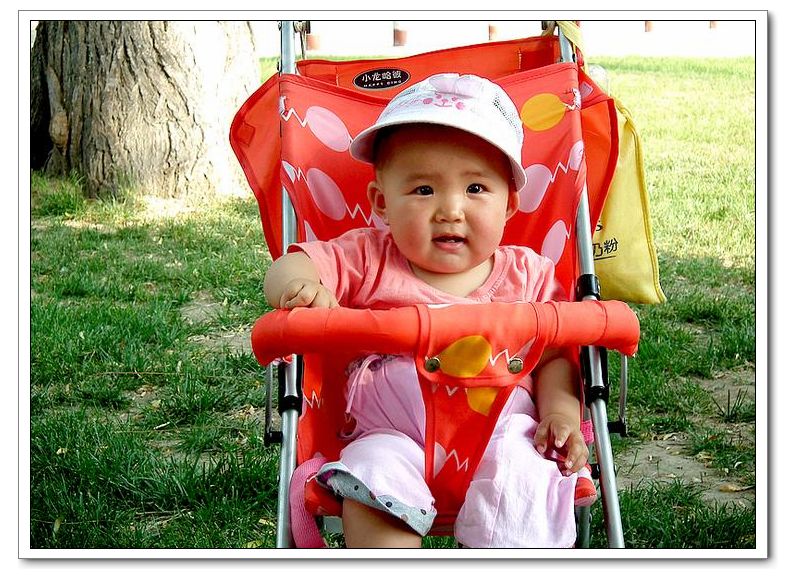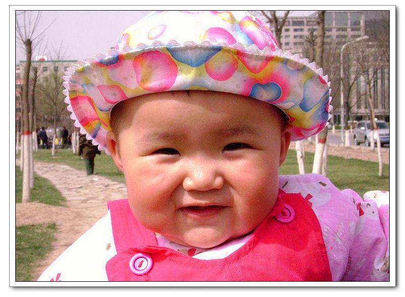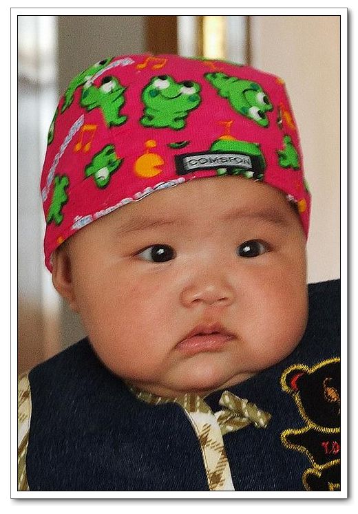 宝宝长得很壮实,好多人都把她当成男娃娃,于是我们在给她选帽子的时候就挑特别女孩子味的,这顶气球帽颜色鲜艳,很漂亮。