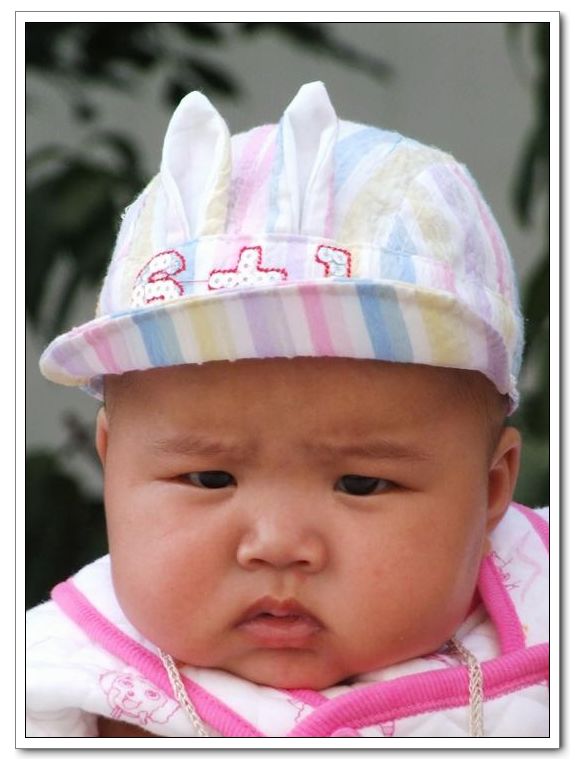 小的时候我们就给宝宝拿块手绢把四个角扎住当帽子,后来妈妈说怕人家笑话,就给宝宝买了两顶帽子,一定小兔子的,一定红色青蛙的,这是在百天的时候留下的纪念。