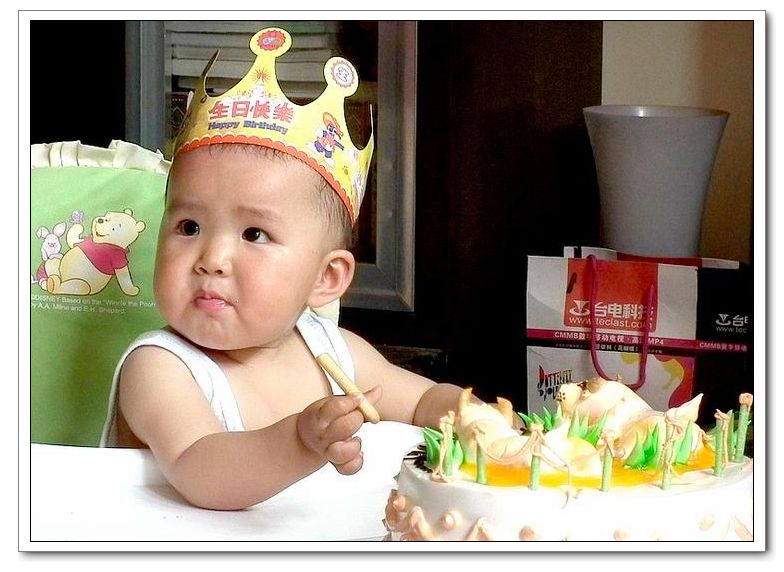 最后来一张宝宝一周岁时的照片吧,这也算帽子,不是吗?