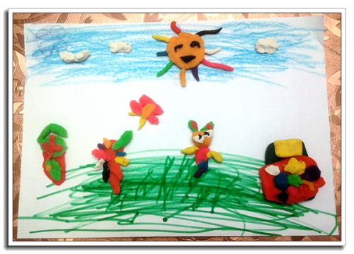 婷的橡皮泥画——婷婷兔去上学