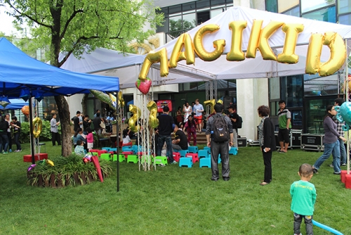 雨棚上醒目的“MAGIKID”英文字母以及动物造型气球,孩子们远远的就看到魔力小孩为孩子们打造的儿童音乐王国。到达现场的小朋友们获赠了儿童节小礼物和音乐玩具。在家长和孩子们的热情呼喊中,草地音乐会准时拉开了序幕!
