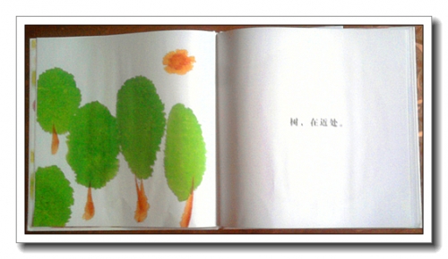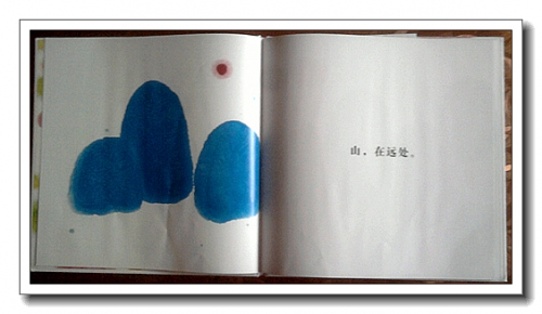 文字简单,我却读得朗朗上口——“山,在远处”;“树,在近处”……讲了一遍,婷边可自己复述,不过她还是喜欢跟我一起听我朗读,尽管是如此简单的语言。