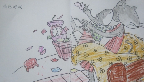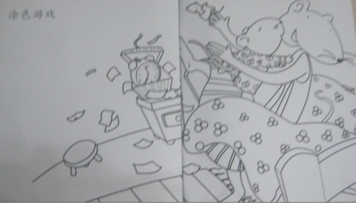 书后面还有一个幸福的母子照的涂色游戏,也是妞喜欢的。看完了就着急去涂色,把这幸福一刻在重新温习一遍,感受学会等待和关爱的幸福时刻。