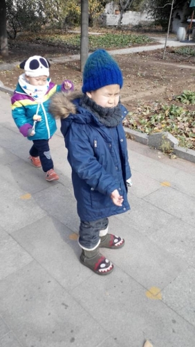 昨天下雪了,正好是上午10多钟,太阳还很好,老师带着孩子们出来了,天天很兴奋,看见雪扑在脸上马上闭上眼睛,估计他会觉得小雪花凉凉的很刺激,帽子和脖套都是今年学着给他织的,老师们都觉得很好看,我也觉得很漂亮,身上的物品是妈妈亲手做的,估计会更温暖一些,孩子也会跟着一起玩玩线,线线还可以拿来做手工哦。