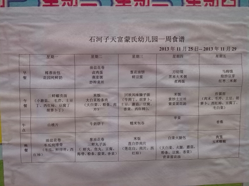 2013年11月25日----2013年11月30日魏宝幼儿园一周菜单: