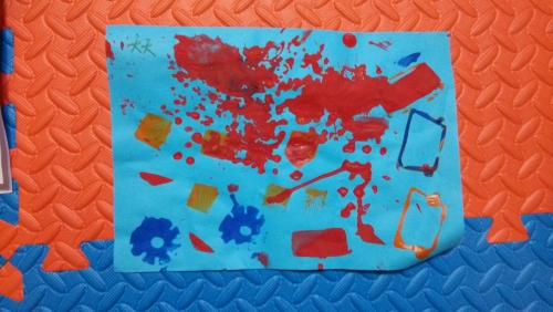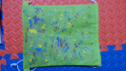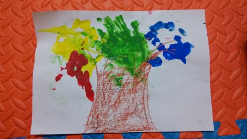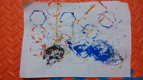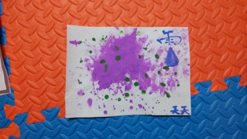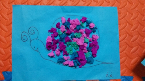 有的是在家里完成的,有的是在幼儿园完成的,之前跟爸爸探讨怎么弄这些作品,爸爸说每幅作品都拍下来,然后找个箱子或者夹子保存一下就好,我觉得这个方式也比较靠谱。