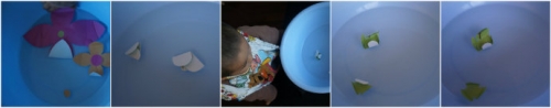 在星星版第15期中,有两个简单的小实验,做了这两个小实验,宝宝会觉得水很神奇,呵呵。两个简单的实验,我分了两个不同的时段完成,下面就是我们当时做实验的场景。