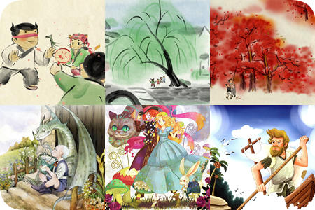 《太爷爷的教诲之弟子规》《太爷爷的教诲之三字经》《太爷爷的教诲之唐诗五十三首》《我是夏蛋蛋——蓝耳朵》《爱丽丝梦游仙境》《鲁滨逊漂流记》