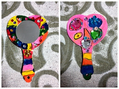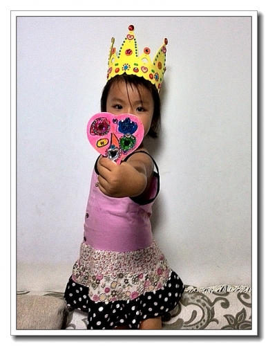给婷从网上买了些DIY的材料,一方面是为了包邮,一方面是婷喜欢,王冠买了7个,眼镜买了俩,镜子买了俩,还有水钻若干。婷天天盼望着,问什么时候到,好不容易到了,当天就做了一个王冠、一个镜子,从下午做到晚上,除去吃饭的时间,整整坐了了4、5个小时。前一天我让她用皮筋编手镯,自己看手机,结果婷撂了挑子,我刚批评了她没耐心,汗,不是没耐心,是妈妈不关注,就没兴趣啊。