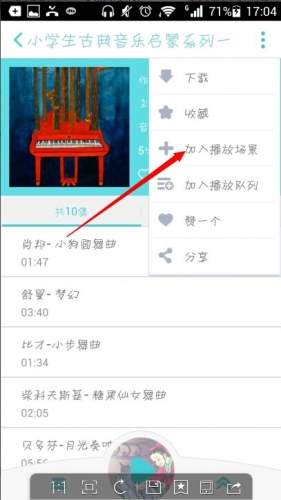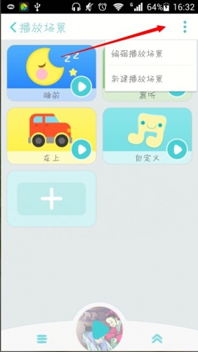2.进入【播放场景】界面后,点击箭头标记的界面栏,出现【编辑播放场景】和【新建播放场景】两个选项。