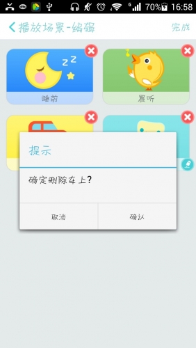 在【编辑播放场景】中,单击每个场景右上角的红色叉号即可删除不需要场景。