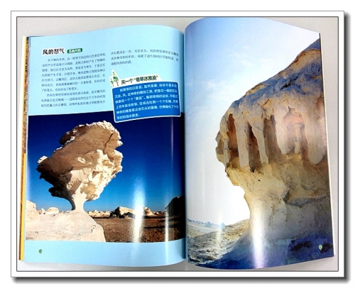 然后翻开书……一下子就被震惊了,久久回不过神来。精美的图片将地理的美真实呈现在你的面前。牛奶、鸡尾酒、冰激凌、蛋挞、巧克力、蛋糕,这是甜品屋吗?大自然万千变化,鬼斧神工,人类的想象力也千奇百怪,天马行空,有不喜欢好吃的的孩子吗?有不喜欢这样子呈现奇景和妙趣联想的孩子吗?