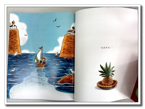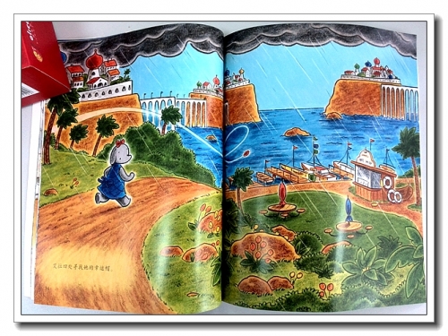很美的一本故事,画面热闹、清爽、开朗,看着尾页,艾拉驾着小舟乘风远航,天蓝水蓝,海鸟飞翔,螃蟹悠然的在礁石上横行,挥舞着大鳌仿佛与艾拉呼应道别,眼界宽阔,心内欣然。