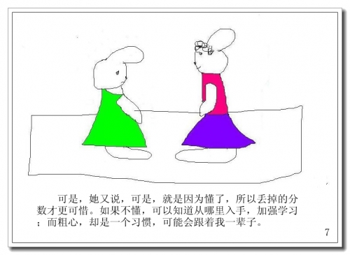 可是,她又说,可是,就是因为懂了,所以丢掉的分数才更可惜。如果不懂,可以知道从哪里入手,加强学习;而粗心,却是一个习惯,可能会跟着我一辈子。