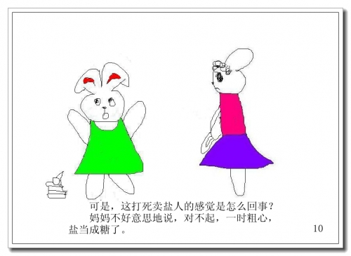 妈妈不好意思地说,对不起,一时粗心,把盐当成糖了。