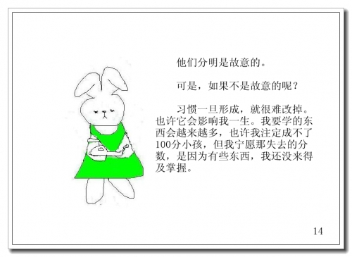习惯一旦形成,就很难改掉。也许它会影响我一生。我要学的东西会越来越多,也许我注定成不了100分小孩,但我宁愿那失去的分数,是因为有些东西,我还没来得及掌握。