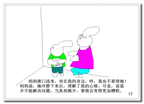 妈妈推门进来,坐在我的身边。哼,我也不要理她!妈妈说,她冷静下来后,理解了我的心情。可是,说谎并不能解决问题,当真相揭开,事情会变得更加糟糕。