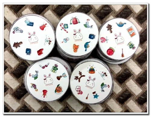 计算好后,开始找图片,要萌萌哒嘀,风格基本一致滴,又寻找、反复敲定若干次,最后终于定下来。中间的婷婷兔是logo,可不算一样物品,否则每张图片都有它啊。