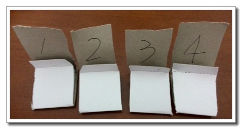 找一个纸盒子,取一条边剪开,不同的颜色标数字。