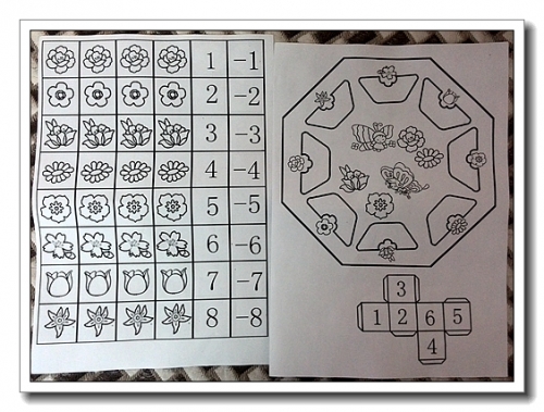 原来还觉得扔色子太简单了,想考考婷的记忆,所以又做了几张数字纸片出来,想的是把纸片翻转,然后让婷靠记忆去翻,翻两张牌,相加或减,可以得到相应的点数,锻炼孩子的计算能力。