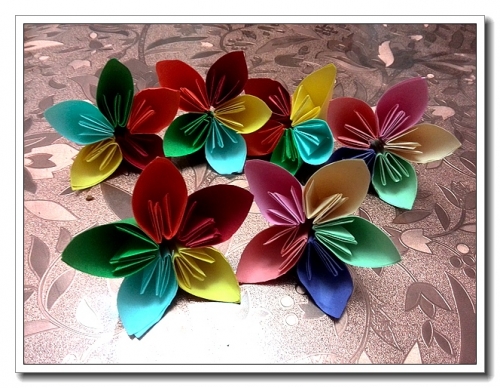 自从看了那个彩色的樱花球,我是念念不忘。可是总感觉很浪费材料,所以一直没有下手。年初的一个晚上,婷要折纸,便终于一起把这个弄了出来。也没有我想得那么浪费。