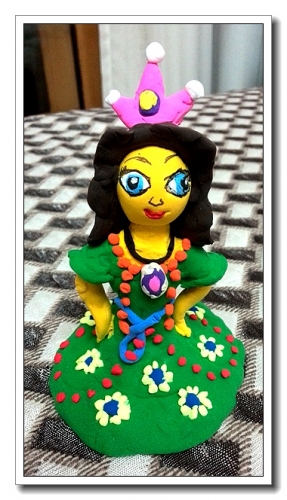 这也是年初做的。跟婷一起捏橡皮泥,捏了个“索非亚”,虽然极其不像,好歹颜色还是大体相似的。婷拿到幼儿园去,结果送人了,让我再给她捏一个。橡皮泥的颜色不多了,尤其没有了白色、肉色,于是这一位就得了“黄疸”。里面有很多部分是婷帮的忙。