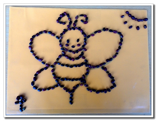 前几天参加一个活动,做的豆子画。豆子是一颗红一颗黑排列的,婷做得非常认真。