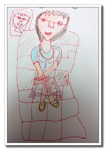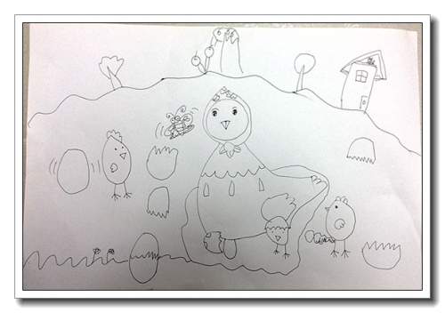 顺便把婷前几天给我画的速写和一张鸡妈妈的临摹发上来——