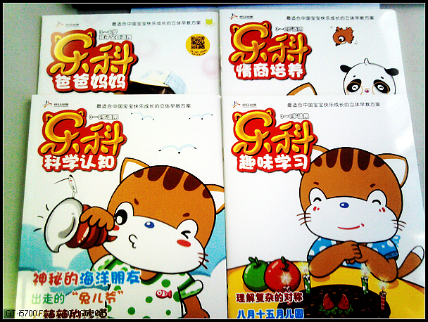 书有四本,分别是《趣味学习》、《科学认知》、《情商培养》和《爸爸妈妈》,16K本,颜色艳丽,画面精美。