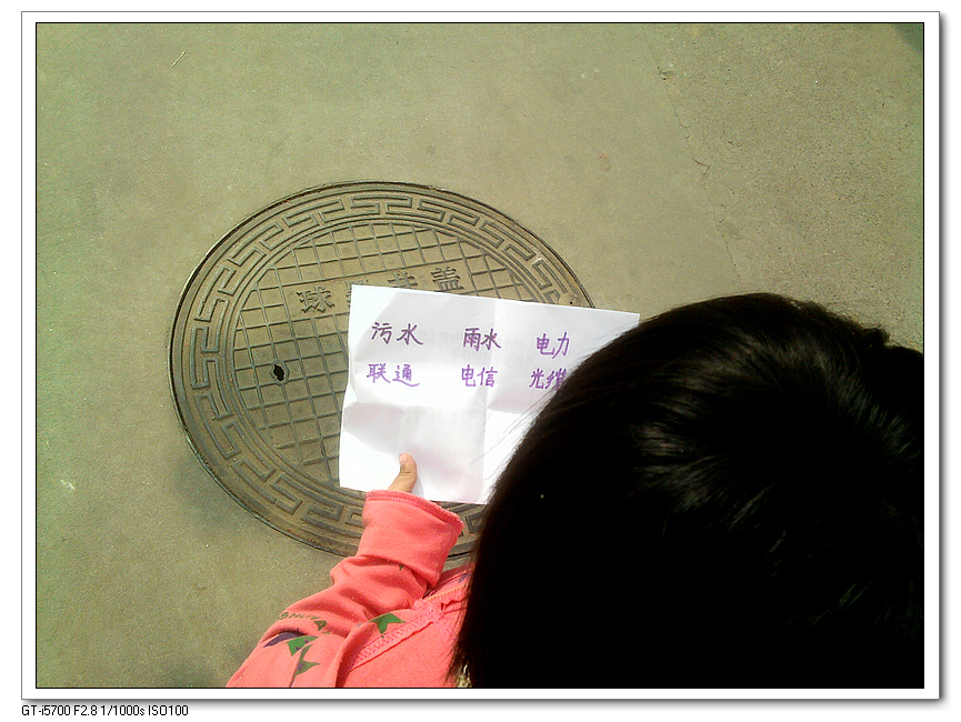 还是上次领着宝宝去参加读书活动的时候,走在路上跟宝宝一路看着井盖,啊,还有方形的呢;看,这个像不像一张脸;嗯,让我们来看看这个上面写着什么?一路上,各单位的井盖不少,给我们增添了一点小小的乐趣。