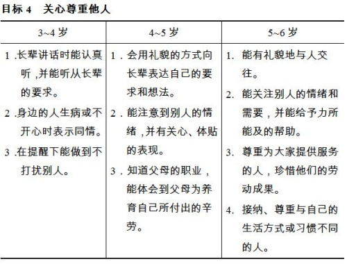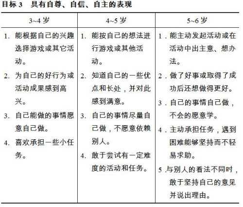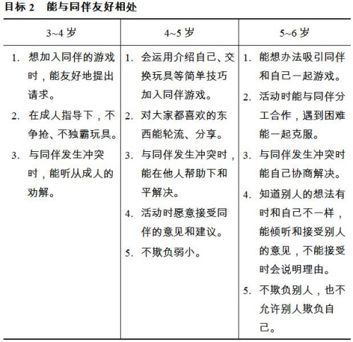 家庭、幼儿园和社会应共同努力,为幼儿创设温暖、关爱、平等的家庭和集体生活氛围,建立良好的亲子关系、师生关系和同伴关系,让幼儿在积极健康的人际关系中获得安全感和信任感,发展自信和自尊,在良好的社会环境及文化的熏陶中学会遵守规则,形成基本的认同感和归属感。
