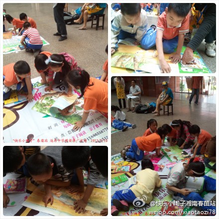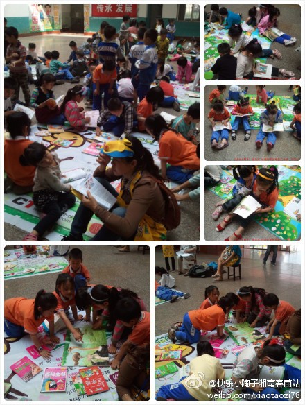 5月16日下午@快乐小陶子 春苗站绘本进学校活动继续在适存中学举行,共有7名志愿者,90多名学生参加。今天读书的是二年级的学生,相比昨天一年级的学生,孩子们的读书习惯及自控能力好多了,绝大多数学生都能找到自己喜欢的书,看得还比较认真,参加了昨天活动的志愿者看了后心里美滋滋的……