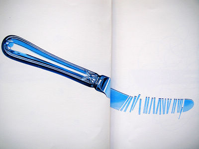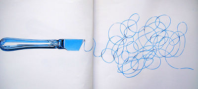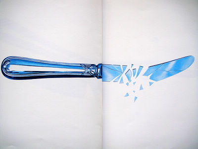小刀经历了各种神奇的变化:小刀弯了、扭曲了、折断了、打碎了、融化了、切成条了、扯成丝了、撕成碎片了、散开了、拉长了、收缩了、膨胀了、爆炸了……一把平凡的小刀,一件常见的生活物品,被作者赋予了灵感,使小刀有了一种不可思议的魔力,带来了新奇的体验。