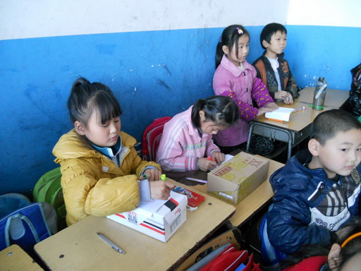 然后,展示盒子的环节,棉花糖叔叔选了几个有代表性的盒子给大家展示。其中有个小女生的盒子是自从阿福童以来所见到的最特别的盒子——圆圆的糖盒;还有的同学做盒子的时候非常的认真,连边边也要粘得整整齐齐的,大家都很用心。最后全班同学都把自己的盒子展示了一翻。然后,棉花糖叔叔对同学们说让他们把自己最珍贵的物品放到阿福童盒子里。