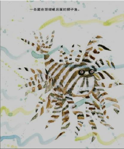 书中所有的场景、动物,运用了彩绘拼贴的手法,并且在书内页里增加了透明页。当介绍某种具有毒性或者攻击性的动物时,就会用透明页遮挡,暗示那些危险的杀手都藏在暗处。开始是看不到的,当翻过透明页后,那些危险动物就显现出来了。这些危险动物,都会威胁小宝宝的生命。