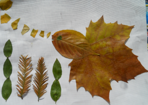 今天总算同宝宝做了一次树叶画。在这之前母亲就捡回来过树叶,本想着让宝宝做树叶画玩的,可是谁知宝宝对此好像不太感兴趣。