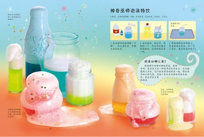 实验的第二天,孩子忘记了是先放洗涤液还是先放小苏打,她的意见是先放小苏打,我的意见是先放洗涤液,孩子并没有轻易地采纳我的意见,而是选择翻书查看一下。她认真地看了看图示,确认我说的对。我很惊讶,她绝对是不识字的,但是她读图的能力已经能够顺利地读懂图解。