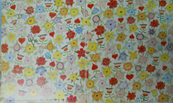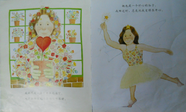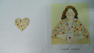 这张画上的妈妈的手指居然是绿色的,其实这也暗示着妈妈的手是有生机的,种什么都会成活的。再看看妈妈所种出来的东西,有纽扣,有鱼,有水果,有杯子,还有那个红色的爱心。还有妈妈的头上和身上感觉也都是花团锦簇的,更让我们感觉到妈妈像花一样。
