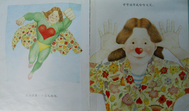 扉页出现的这个黄色的还会发光的心型,正是在暗示着妈妈的爱,温暖的爱,无限的爱。而第一页上依然出现了那个代着爱的心型。那个睡衣的布料的心型还有妈妈手中水杯上的红色的心型。处处都在流露着爱。