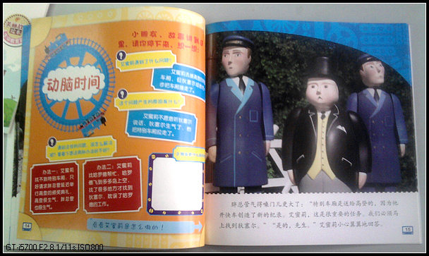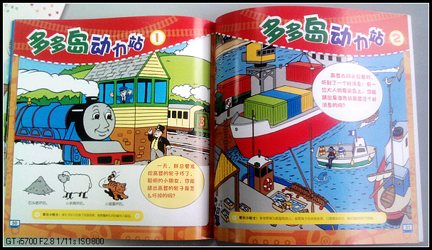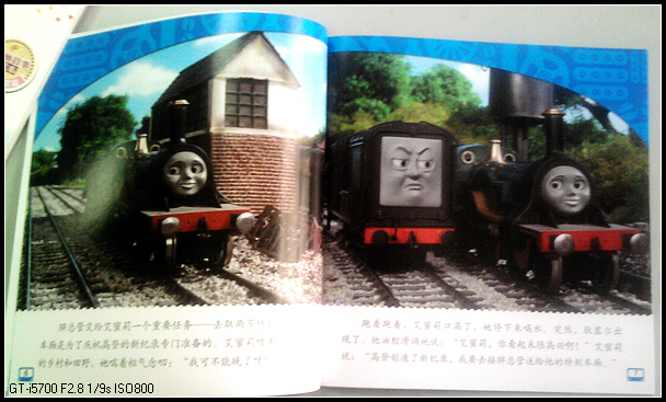 图画应该是从动画片里截取的,对于熟悉动画片的小朋友来说,非常有亲切感,对于没有看过动画片的宝宝来说,也不陌生——跟我们的小玩具一模一样。里面的小火车表情丰富、夸张、可爱,不过由于不熟悉,我到现在还没弄清,到底有哪些小伙伴,还不如宝宝记得清。