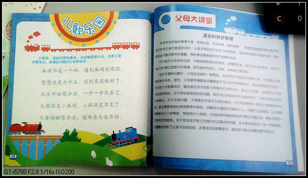 最后是儿歌乐园和父母大讲堂。念了两遍孩子就不感兴趣了,我们改为唱的;父母大讲堂说的是最近比较提倡的《适当的挫折教育》,很赞同这个观点,一帆风顺只是温室里的花朵,只有经过考验,才能正确面对成功和失败,才能让孩子进一步成长。