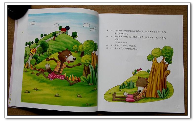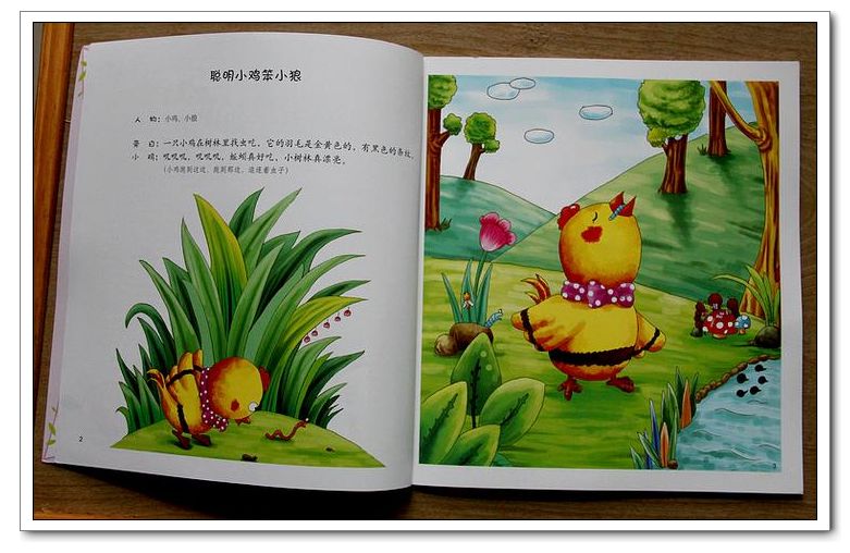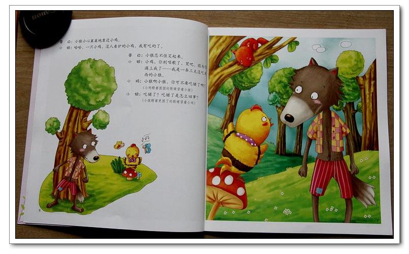 《聪明小鸡笨小狼》,小鸡竟然能由自己的羽毛颜色联想到假装小老虎来吓唬小狼,真是机智,教育孩子们在任何情况下都不要慌乱,用智慧保护自己,弱者也能战胜强者。