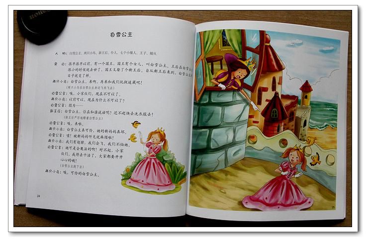 这本书里面有3个故事,《聪明小鸡笨小狼》、《磨牙棒》和我们耳熟能详的《白雪公主》。书的纸张精致、色彩艳丽,很能吸引孩子。这本书是小剧场的形式,可惜宝宝现在太小,不能跟我一起表演,只好我一个人给她唱独角戏。真期待她快点长大,我们一起阅读,一起扮演剧中的角色,来个家庭小剧。