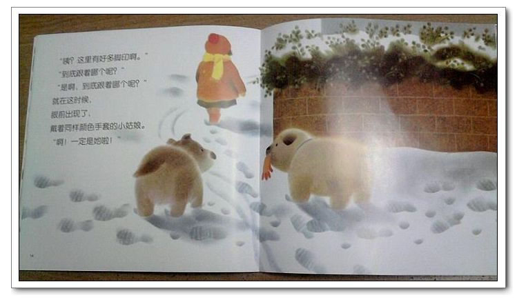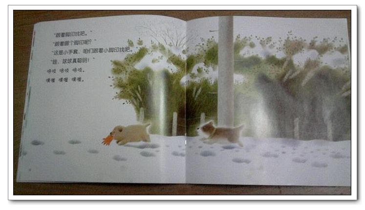 球球在雪地里玩,看到了一串脚印,是谁的呢?脚印贯穿了这本书,引起孩子们的兴趣,引导孩子们注意观察