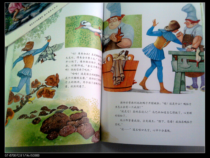 国王能知道任何事情,他是怎么知道呢?乌巴杜打开盘子,原来是一条白蛇,这就是国王的秘密,吃了它,能听到很远的声音,还能听懂动物的语言。可惜书里面没说,国王每天要吃,那么这次没吃到,为什么不质问乌巴度,以及国王如果不每天吃,他的能力是否还能维持。——我比较纠结,我不知道如果我的孩子问我,我该如何回答。——童话有想像的地方,但在想像之外,也得有合理的解释啊。