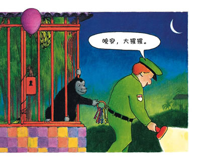 夜深人静,一个身穿绿色制服的动物园管理人去跟动物们一一道晚安,他困得眼睛都睁不开了,没有发现大猩猩偷走了他挂在身后的一串钥匙。调皮的大猩猩从笼子里溜了出来。大猩猩的表情看上去很调皮,不正像我们可爱的孩子吗。